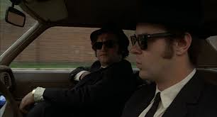 Les Frères Blues sont deux gangsters stoiquent, imperturbables, flegmatiques et drôles, reconnaissables à leurs looks caractéristiques à base de Ray-Ban Wayfarer, costumes et chapeaux noirs, chemises blanche à cravate et à la discordance de leur carrure respective. Ils se retrouvent lorsque Jake (incarcéré pour vol à main armée) est libéré de la prison Joliet de JOliet de l'état d'Illinois, sous la responsabilité de son frère Elwood. Ils apprennent que l'orphelinat catholique où ils ont été élevés est surendetté et va être rasé,à moins de payer mes arriérés de taxes foncières dans un très bref délai administratif de 11 jours, au bureau des impôts de Chicago, au nom de la mère supérieur "La pingouine".